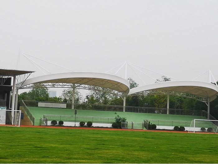 一、具體面積 鋼膜結(jié)構(gòu)體育場(chǎng)看臺(tái)頂棚面積大小不同,價(jià)格也不一樣,面積越大的話每平方米單價(jià)越便宜。